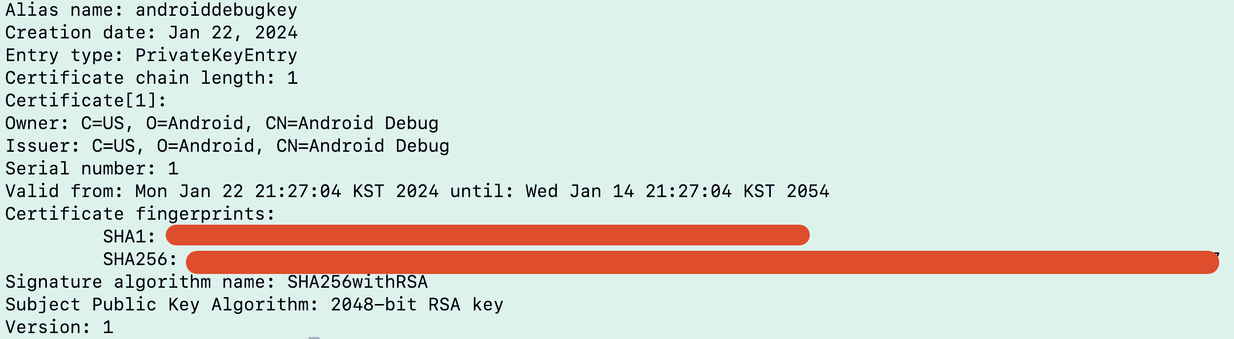 debug.keystore 파일안에 개인키가 있다면 당연히 공개키도 있어야한다.